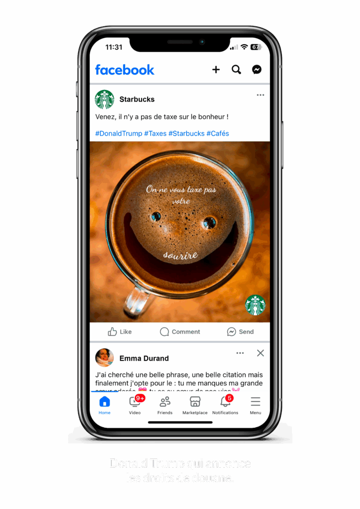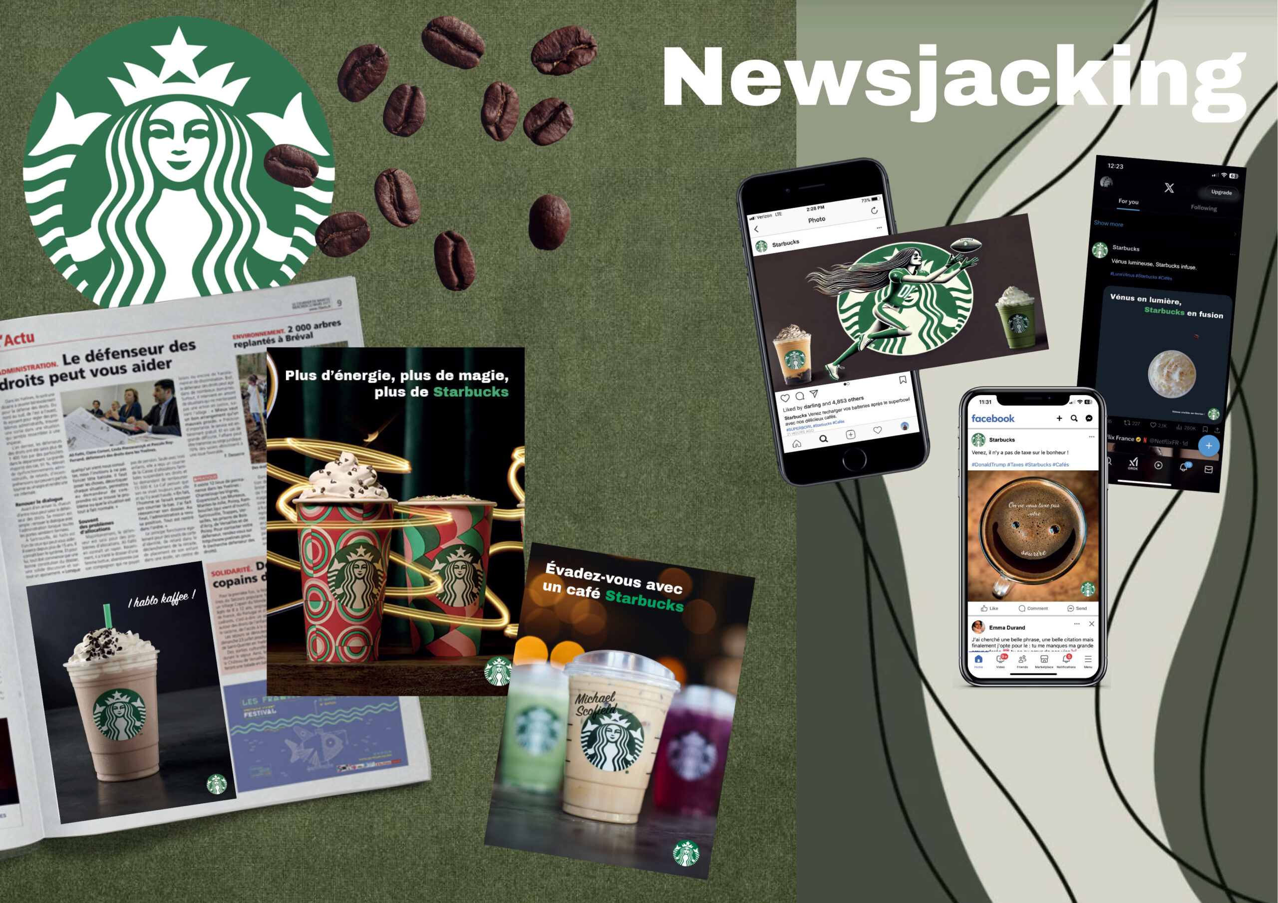 Création de plusieurs visuels publicitaires en utilisant la technique du newsjacking, pour la marque Starbucks.
